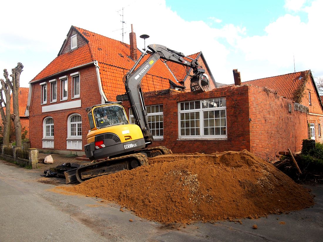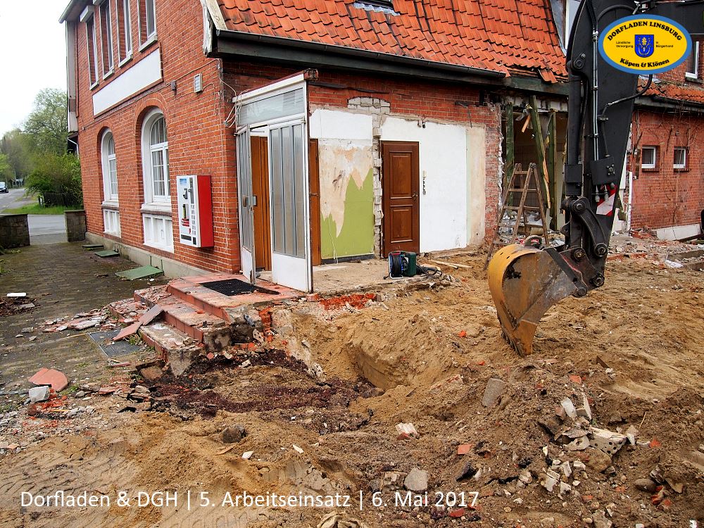 28.04.2017 | Am 18.und 19. April 2017 fand die erste Phase des Abrisses des Anbaus der ehemaligen Landgaststätte "Zum Lindenhof" bzw. des zukünftigen "Dorfladen Linsburg" statt.